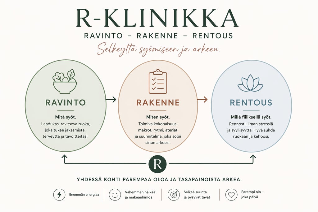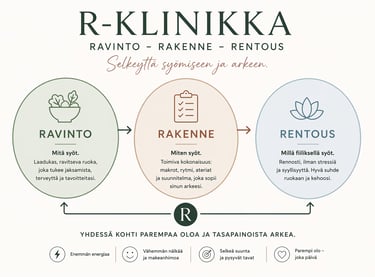 R-Klinikka auttaa sinua rakentamaan toimivan arjen ilman tiukkaa dieettiä.